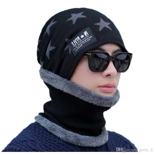 Winter Star Print Fur Beanie Caps Beanie Hat Bib Set Knit Hats Warm Thicken Winter Hat